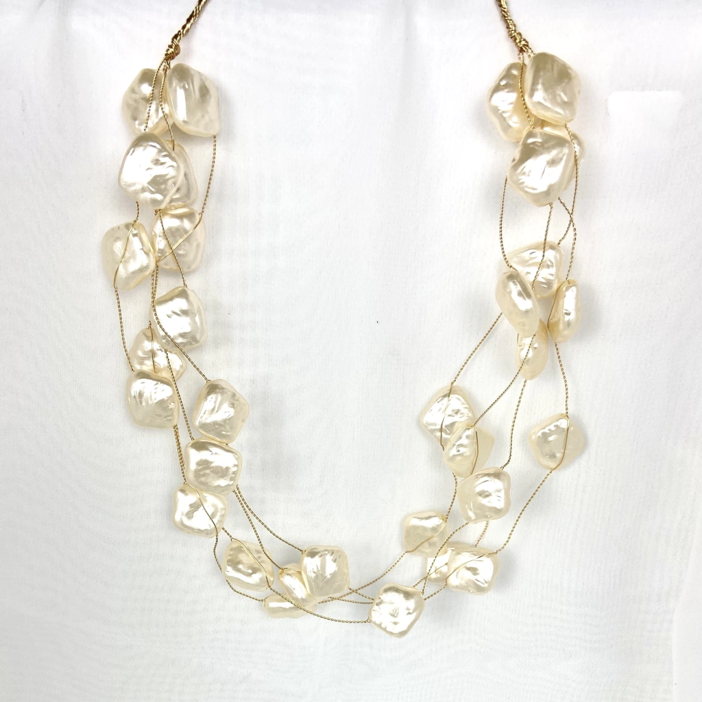 Colares de pérolas quadradas em fios dourados, ideal para compor looks elegantes.
